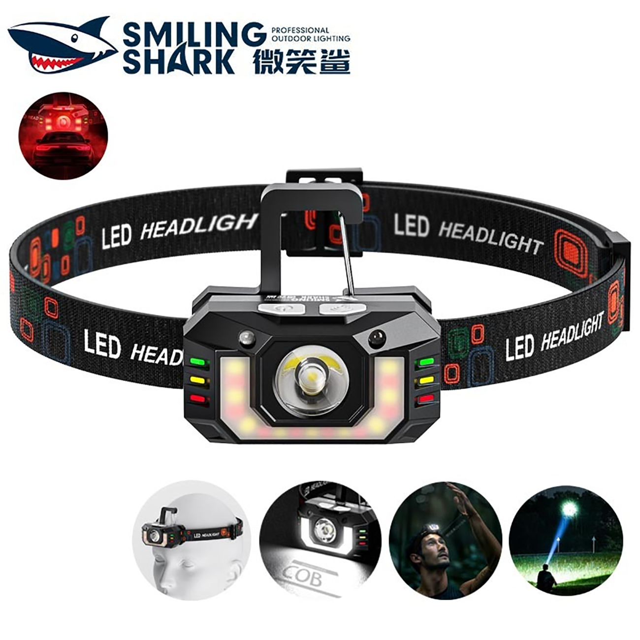 Smiling Shark TD0189 LED Head Lamp Portable Super Bright Keychain Light Type-c Rechargeable Headlight with Red Light Warning lights Waterproof